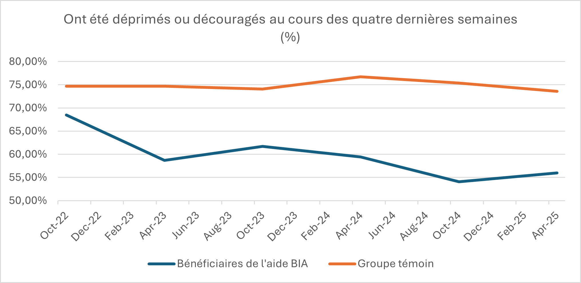 - 15 points de pourcentage de moins de probabilité de se sentir « découragé ou déprimé ».